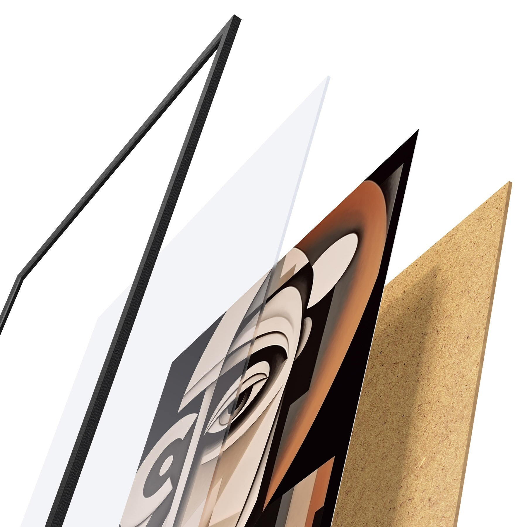 L’affiche encadrée est composée d’un cadre, d’un plexiglas, d’une image imprimée et d’un support en aggloméré. Elle est prête à être accrochée au mur grâce aux fixations situées à l’arrière.