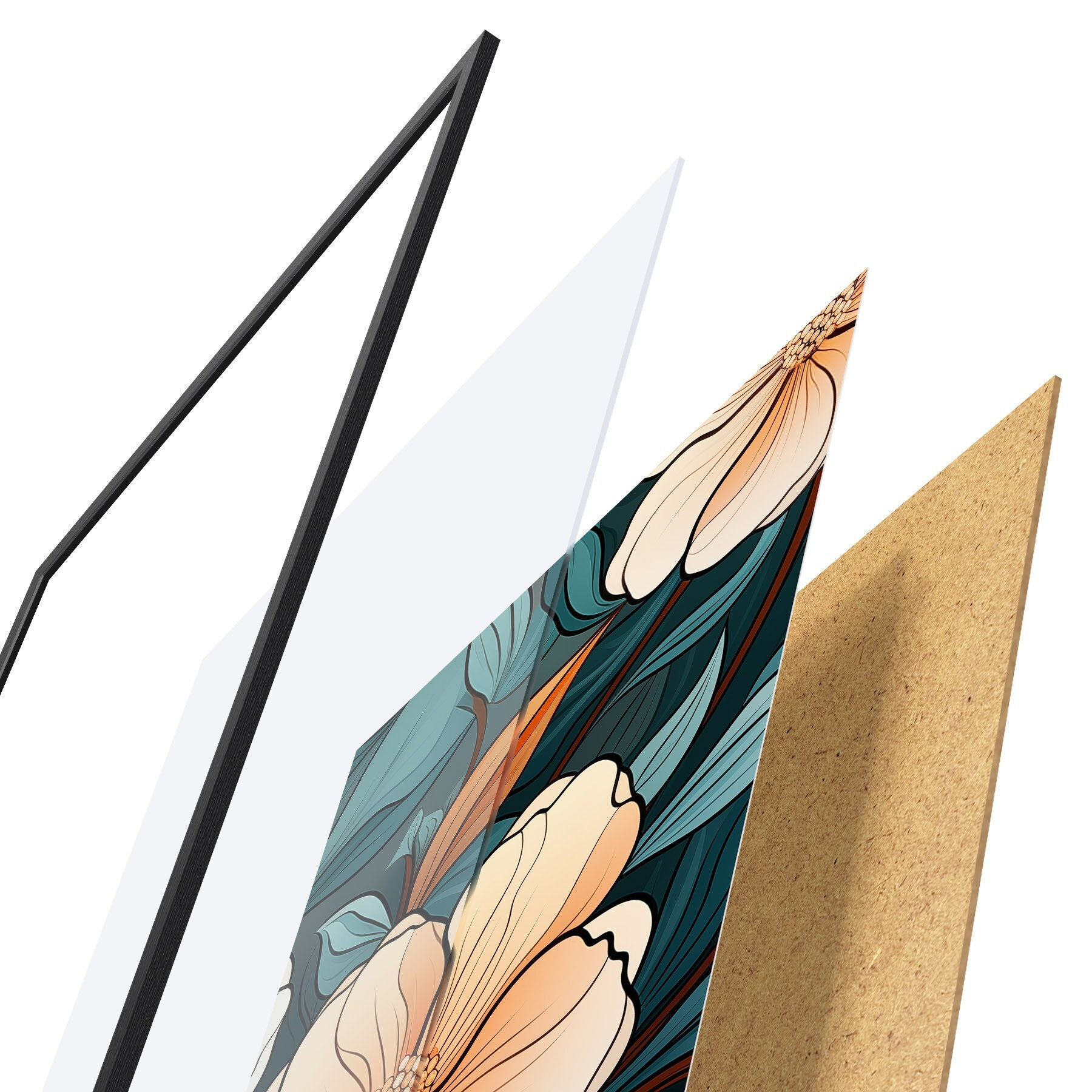 L’affiche encadrée est composée d’un cadre, d’un plexiglas, d’une image imprimée et d’un support en aggloméré. Elle est prête à être accrochée au mur grâce aux fixations situées à l’arrière.