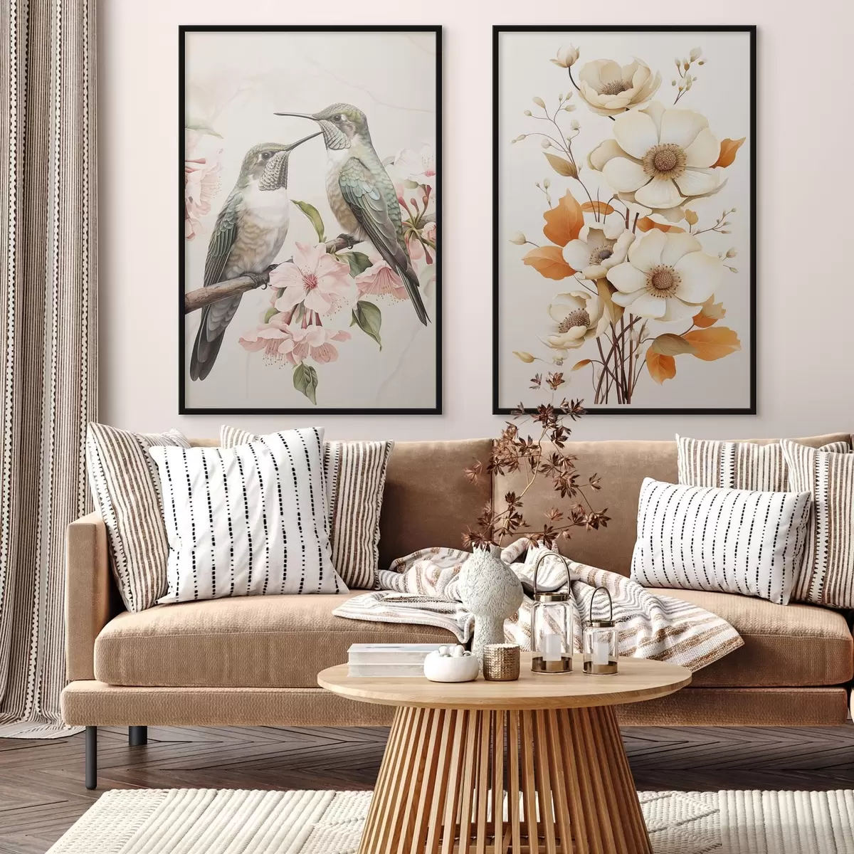 Poster Fleurs et oiseaux sur les branches Nr d00560