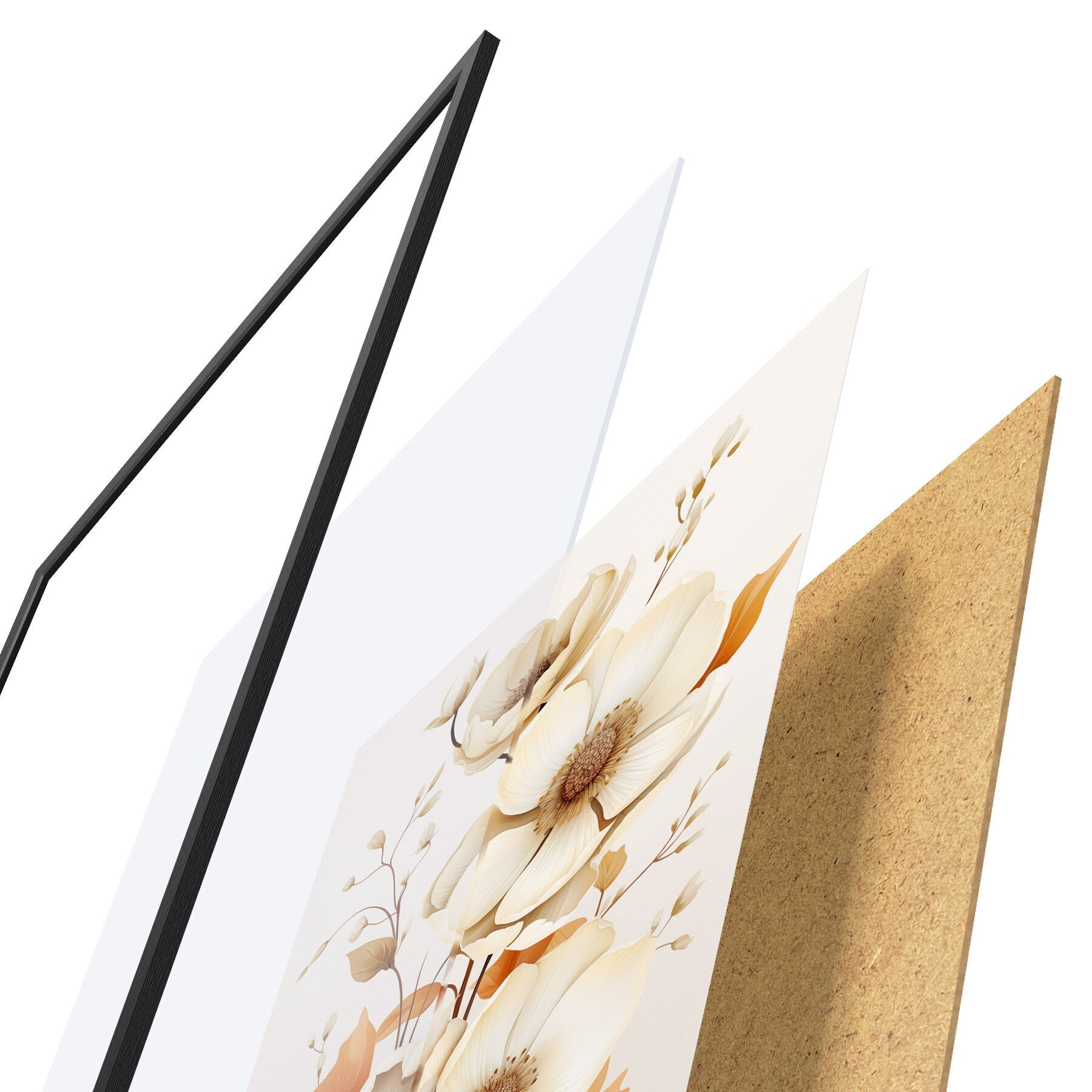 L’affiche encadrée est composée d’un cadre, d’un plexiglas, d’une image imprimée et d’un support en aggloméré. Elle est prête à être accrochée au mur grâce aux fixations situées à l’arrière.