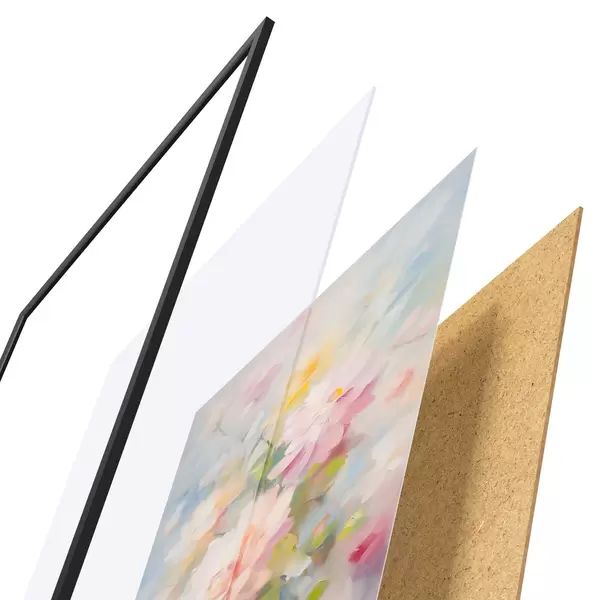 L’affiche encadrée est composée d’un cadre, d’un plexiglas, d’une image imprimée et d’un support en aggloméré. Elle est prête à être accrochée au mur grâce aux fixations situées à l’arrière.