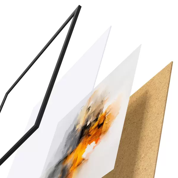 L’affiche encadrée est composée d’un cadre, d’un plexiglas, d’une image imprimée et d’un support en aggloméré. Elle est prête à être accrochée au mur grâce aux fixations situées à l’arrière.
