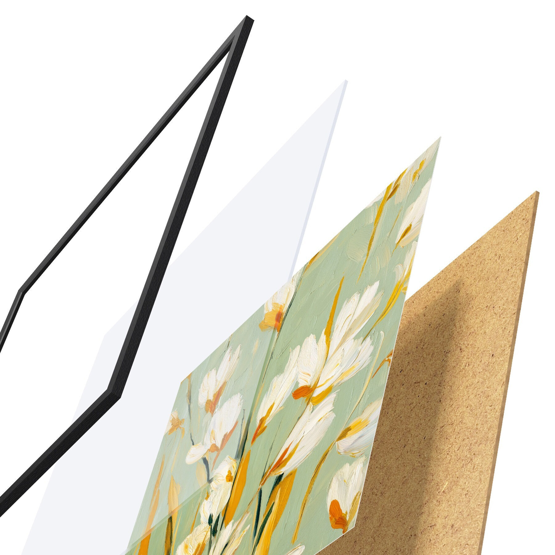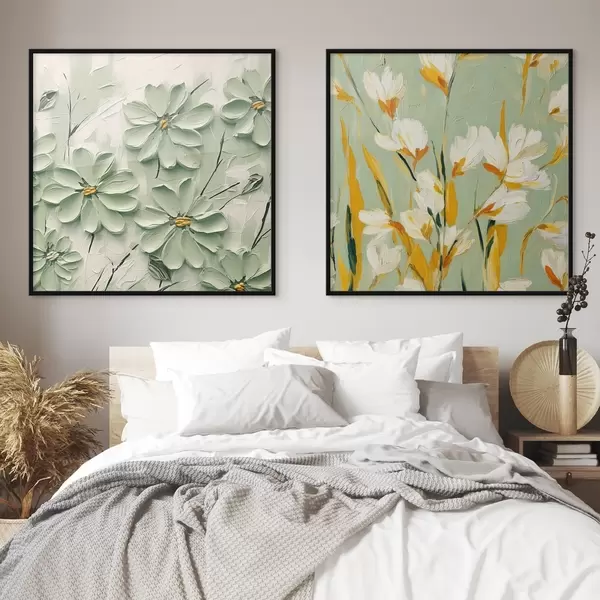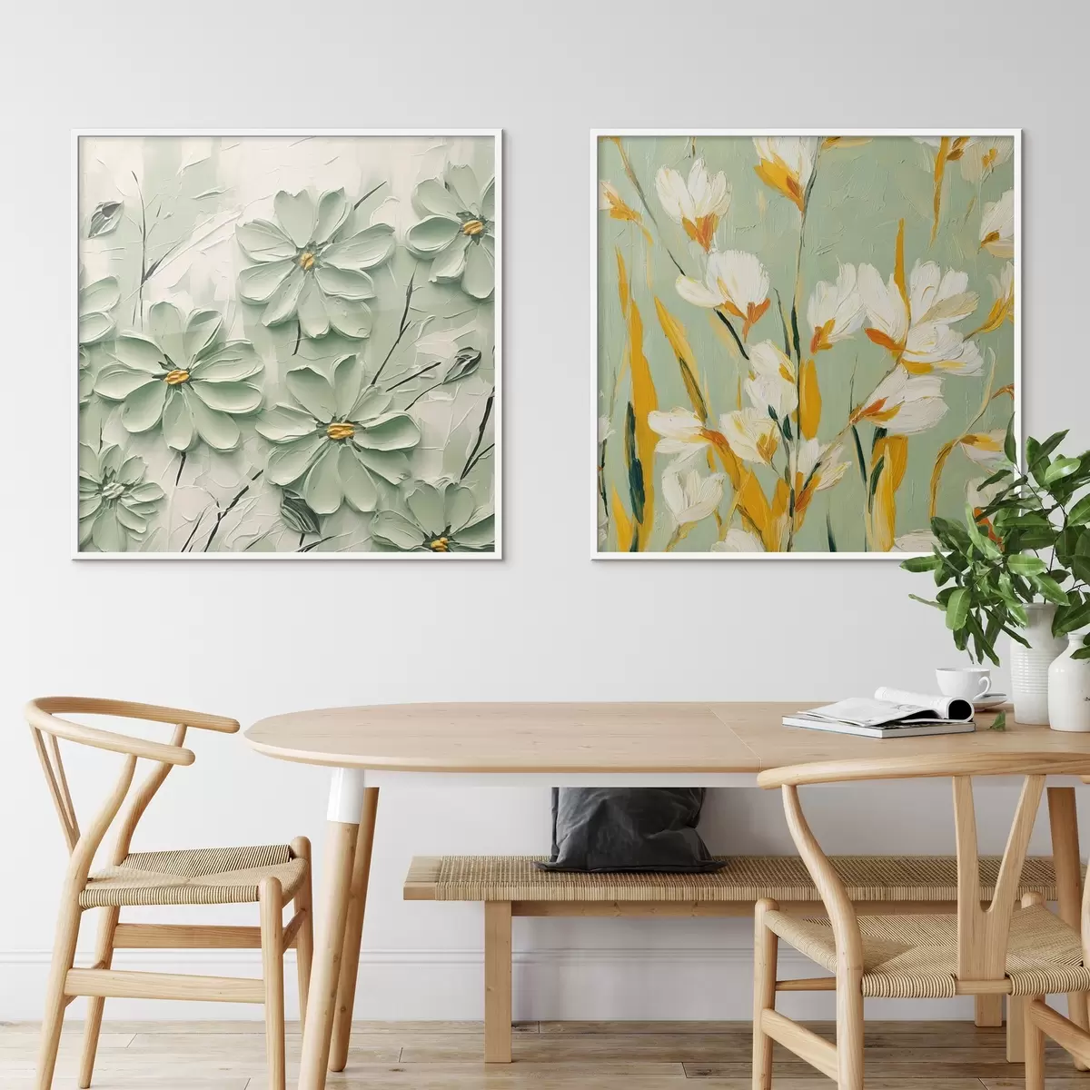 Poster Prairie fleurie : composition artistique avec des fleurs volumétriques sur un fond pastel Nr d00567