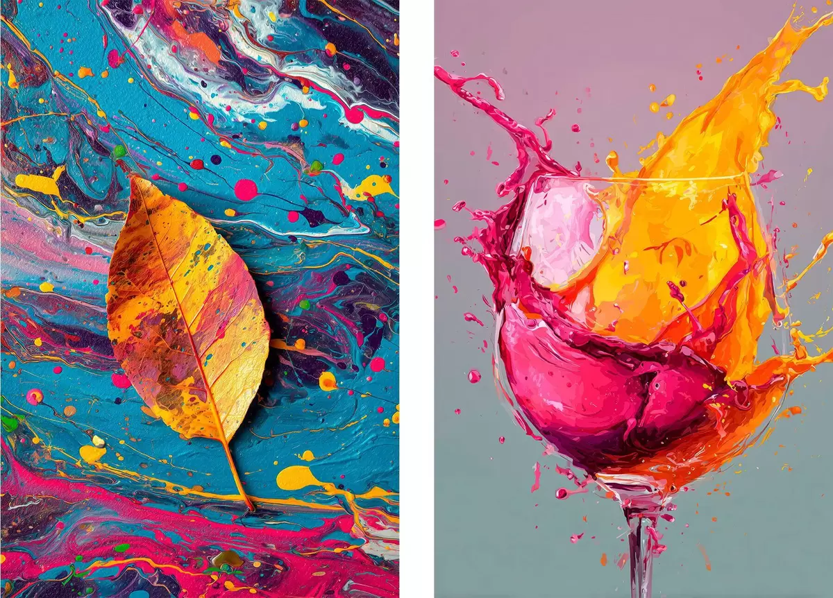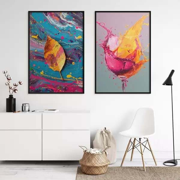 Poster Abstraction expressive avec des éléments de la nature et des boissons Nr d00570