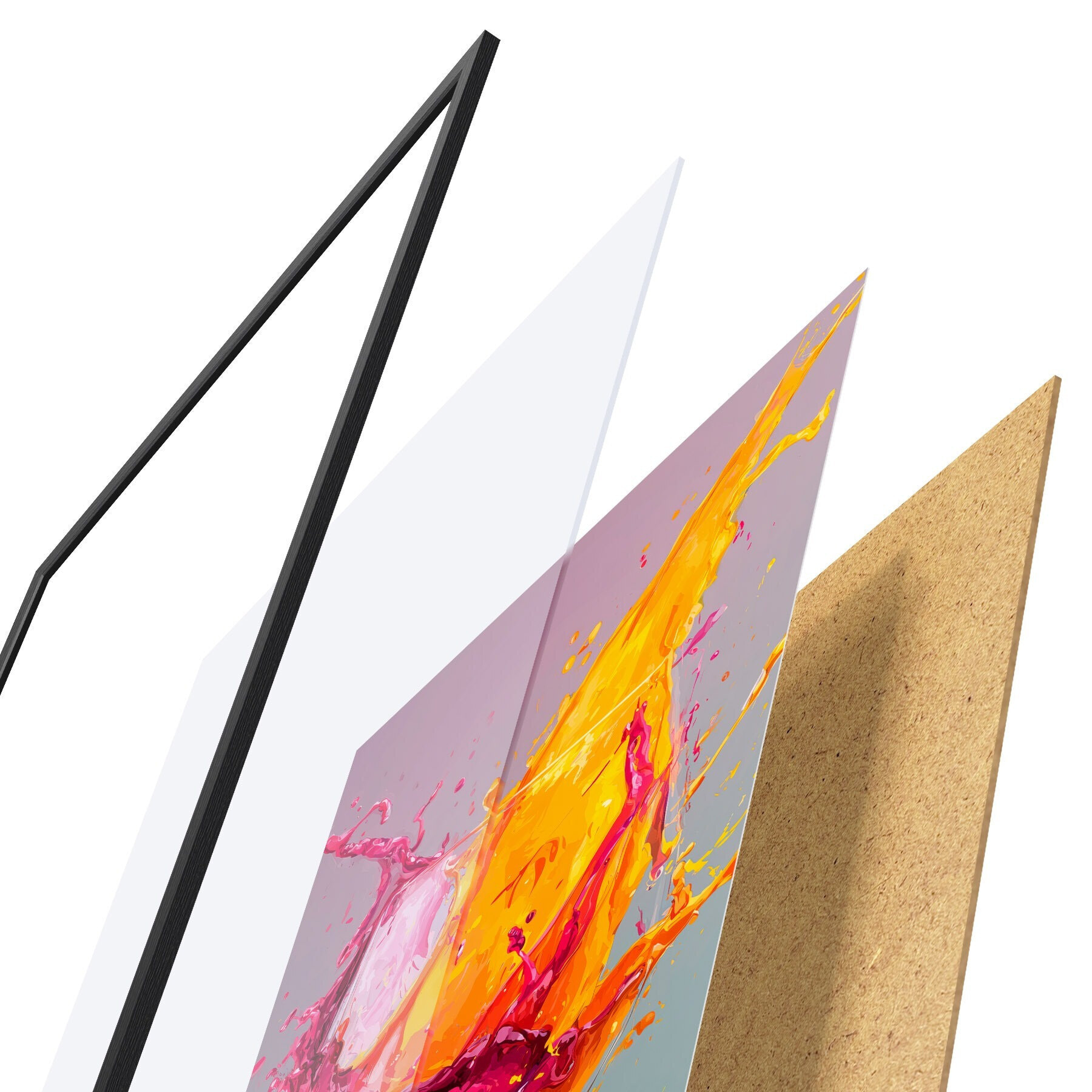 L’affiche encadrée est composée d’un cadre, d’un plexiglas, d’une image imprimée et d’un support en aggloméré. Elle est prête à être accrochée au mur grâce aux fixations situées à l’arrière.
