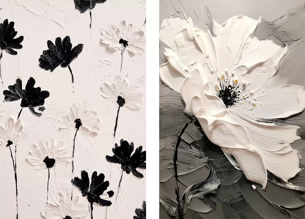 Poster Diptyque de fleurs blanches et noires dans un style moderne Nr d00571