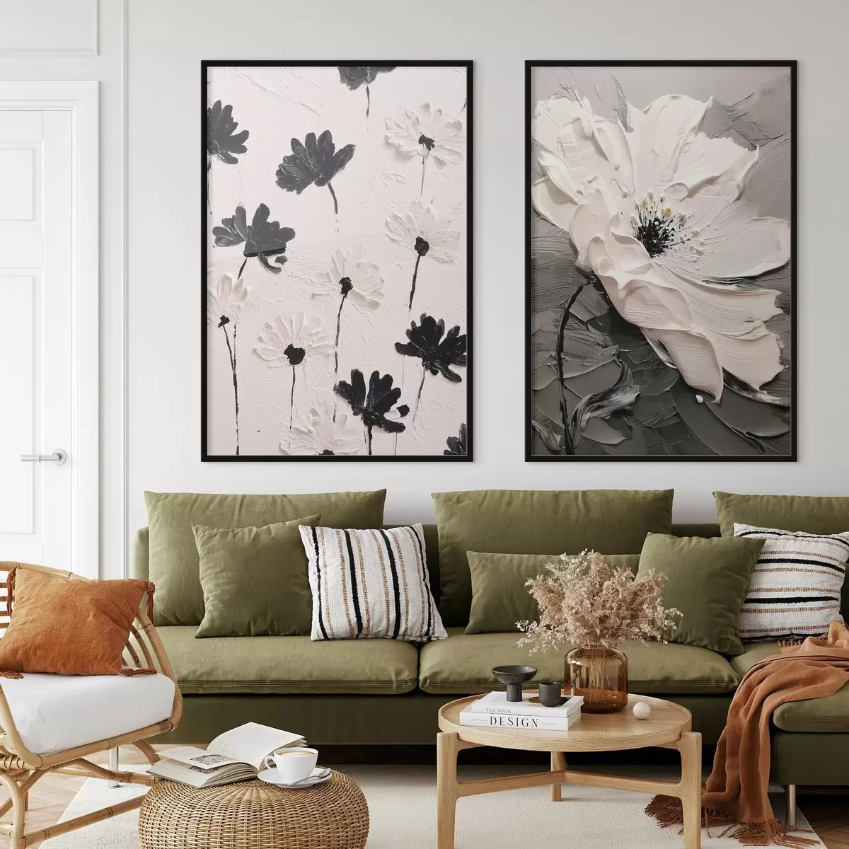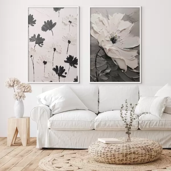 Poster Diptyque de fleurs blanches et noires dans un style moderne d00571