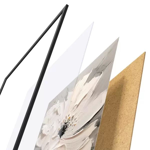 L’affiche encadrée est composée d’un cadre, d’un plexiglas, d’une image imprimée et d’un support en aggloméré. Elle est prête à être accrochée au mur grâce aux fixations situées à l’arrière.