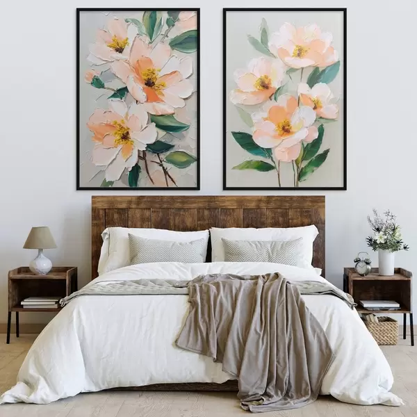 Poster Peinture à l'emporte-pièce combinant un grand bouquet et des fleurs individuelles d00579