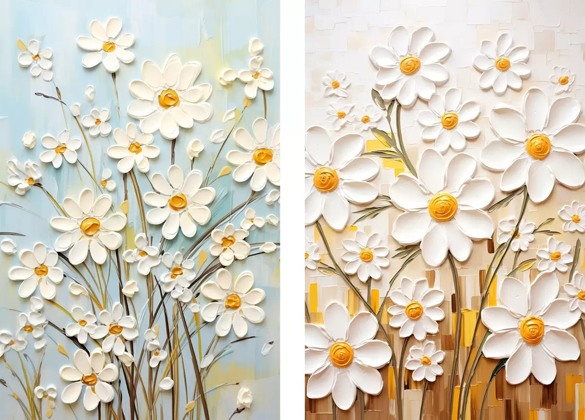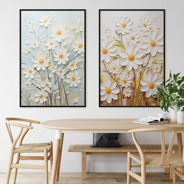 Poster Fleurs ensoleillées : duo artistique avec des marguerites volumétriques et des accents jaunes d00580