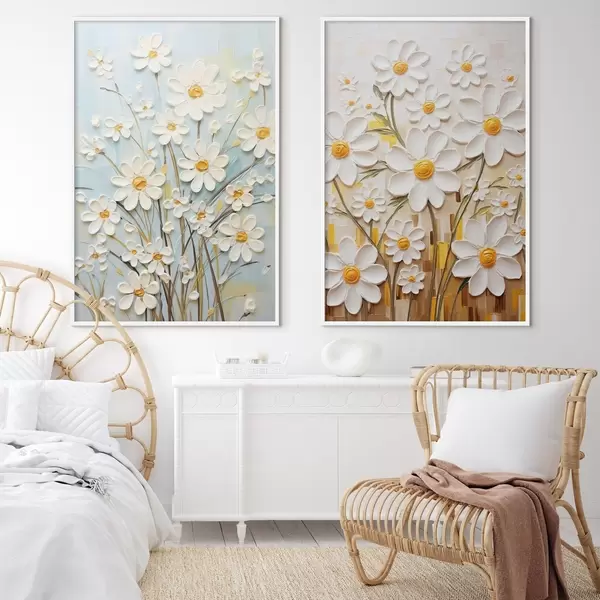 Poster Fleurs ensoleillées : duo artistique avec des marguerites volumétriques et des accents jaunes Nr d00580