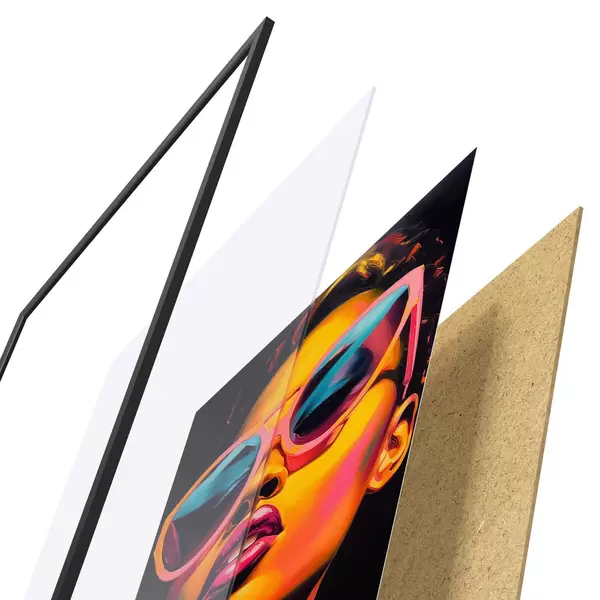L’affiche encadrée est composée d’un cadre, d’un plexiglas, d’une image imprimée et d’un support en aggloméré. Elle est prête à être accrochée au mur grâce aux fixations situées à l’arrière.