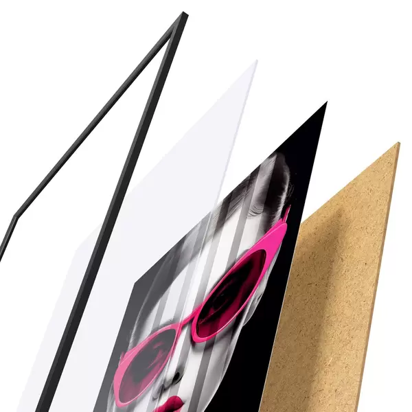 L’affiche encadrée est composée d’un cadre, d’un plexiglas, d’une image imprimée et d’un support en aggloméré. Elle est prête à être accrochée au mur grâce aux fixations situées à l’arrière.