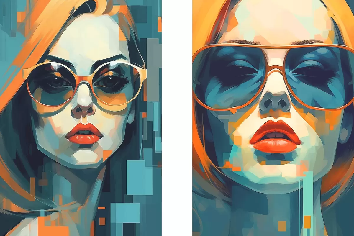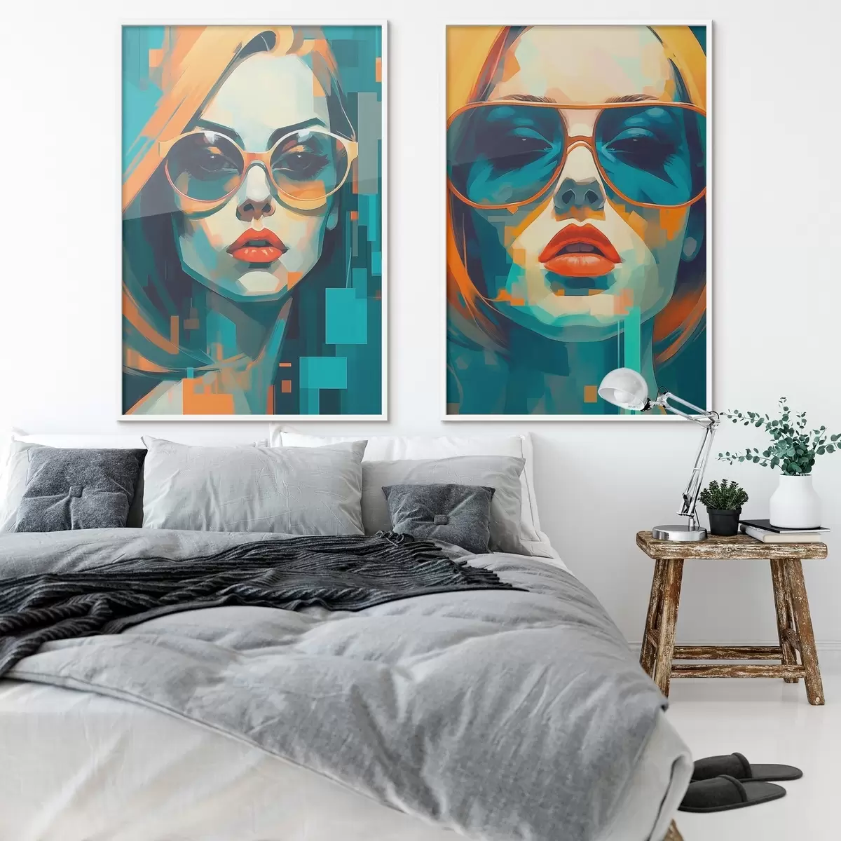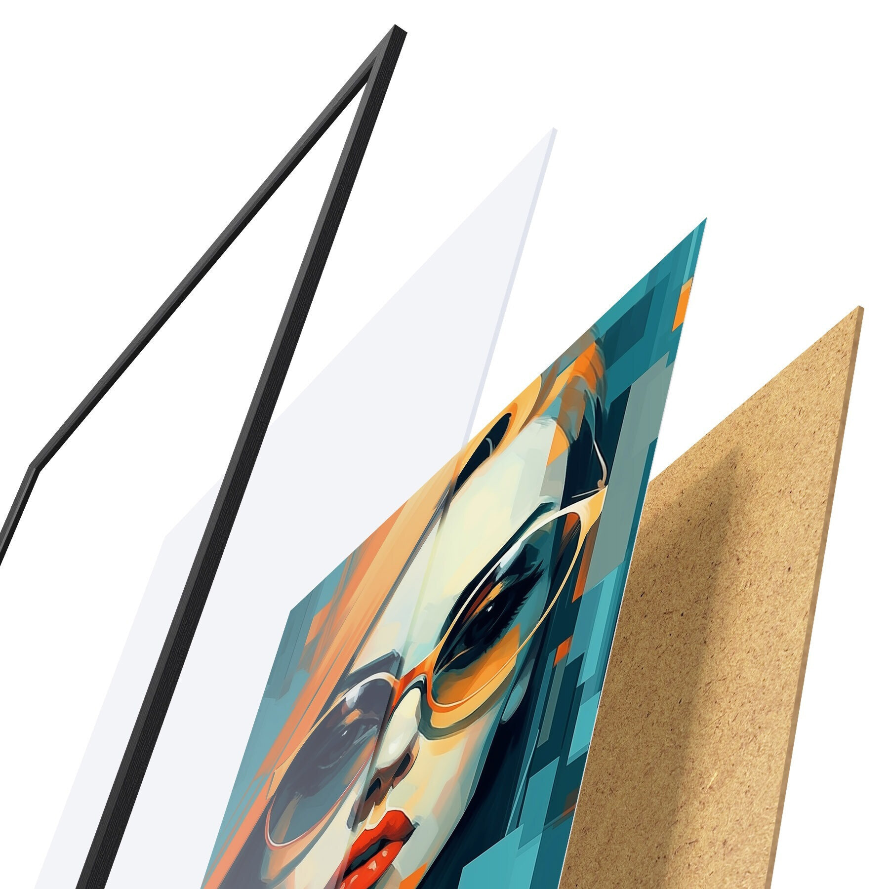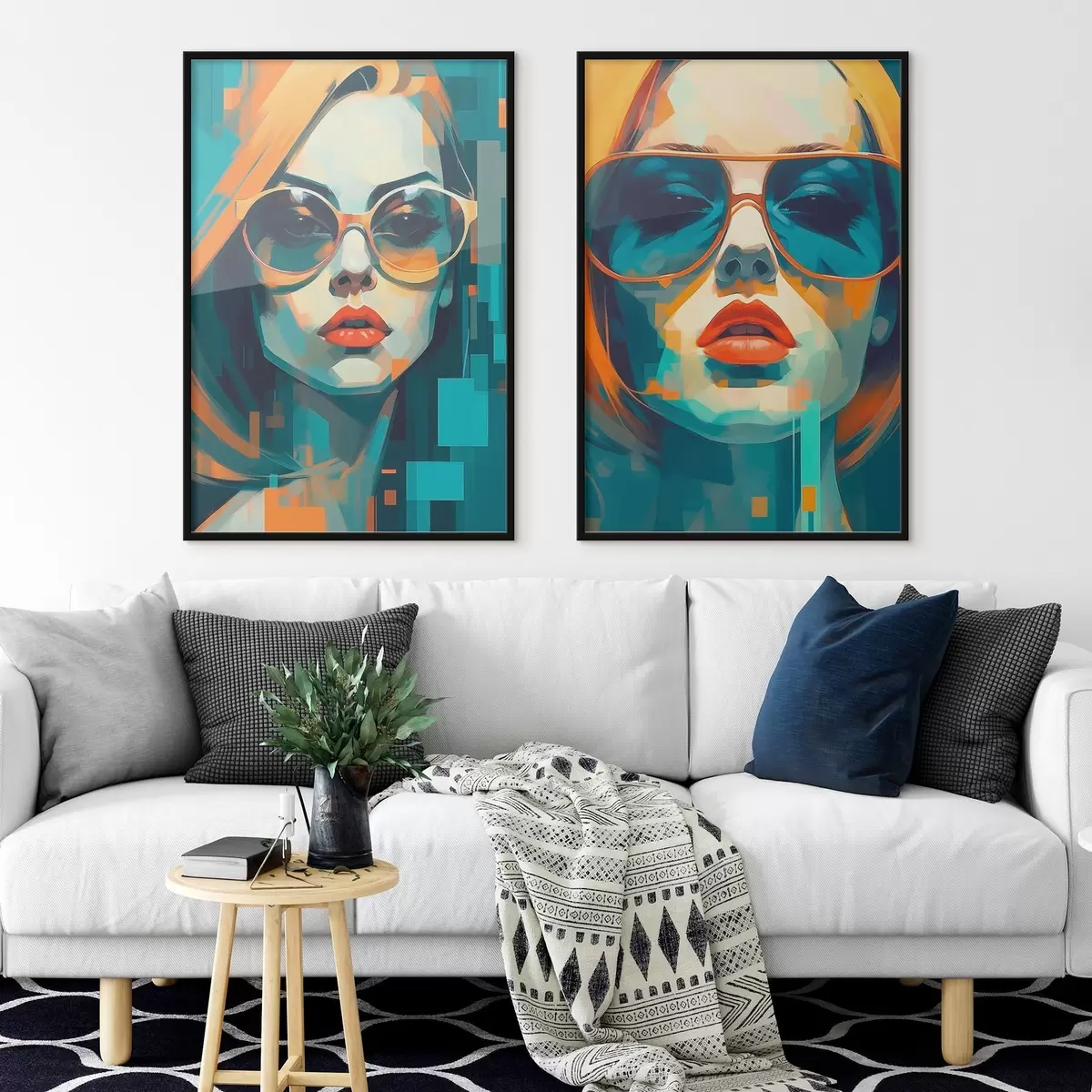 Poster Portraits de femmes portant des lunettes dans le style de l'abstraction numérique d00587