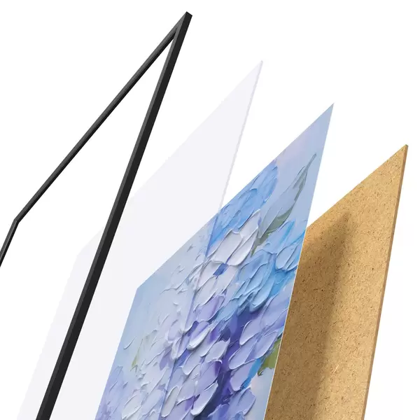 L’affiche encadrée est composée d’un cadre, d’un plexiglas, d’une image imprimée et d’un support en aggloméré. Elle est prête à être accrochée au mur grâce aux fixations situées à l’arrière.