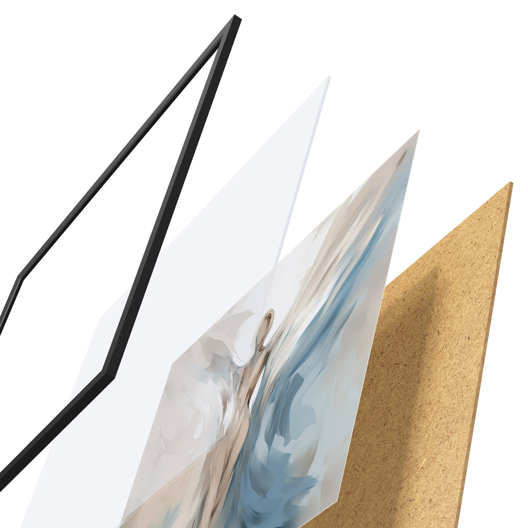 L’affiche encadrée est composée d’un cadre, d’un plexiglas, d’une image imprimée et d’un support en aggloméré. Elle est prête à être accrochée au mur grâce aux fixations situées à l’arrière.