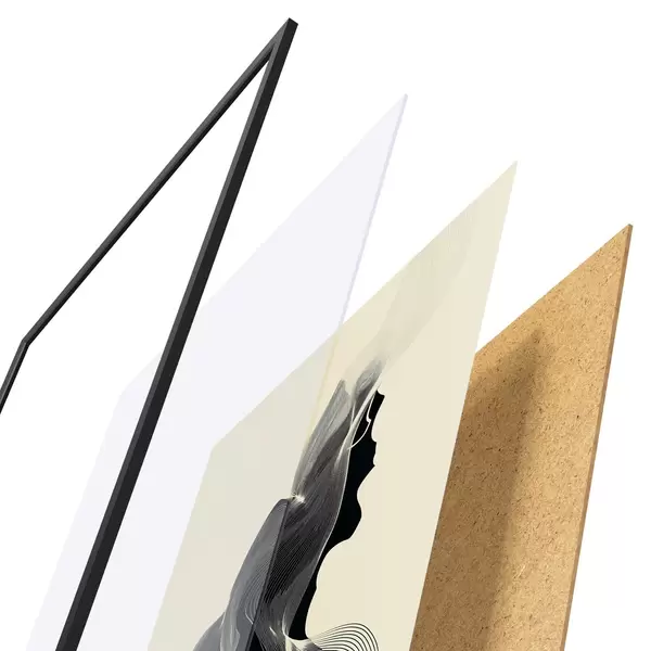 L’affiche encadrée est composée d’un cadre, d’un plexiglas, d’une image imprimée et d’un support en aggloméré. Elle est prête à être accrochée au mur grâce aux fixations situées à l’arrière.