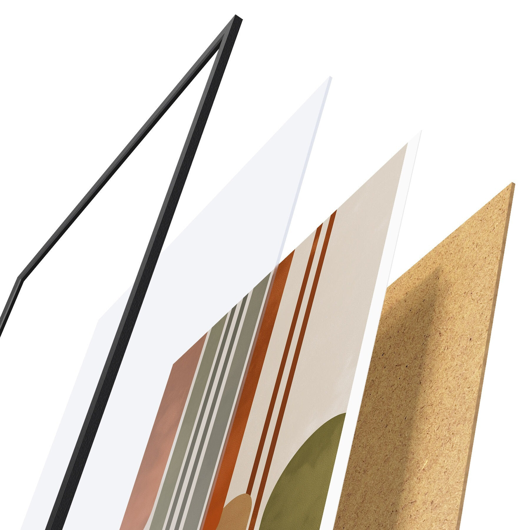 L’affiche encadrée est composée d’un cadre, d’un plexiglas, d’une image imprimée et d’un support en aggloméré. Elle est prête à être accrochée au mur grâce aux fixations situées à l’arrière.