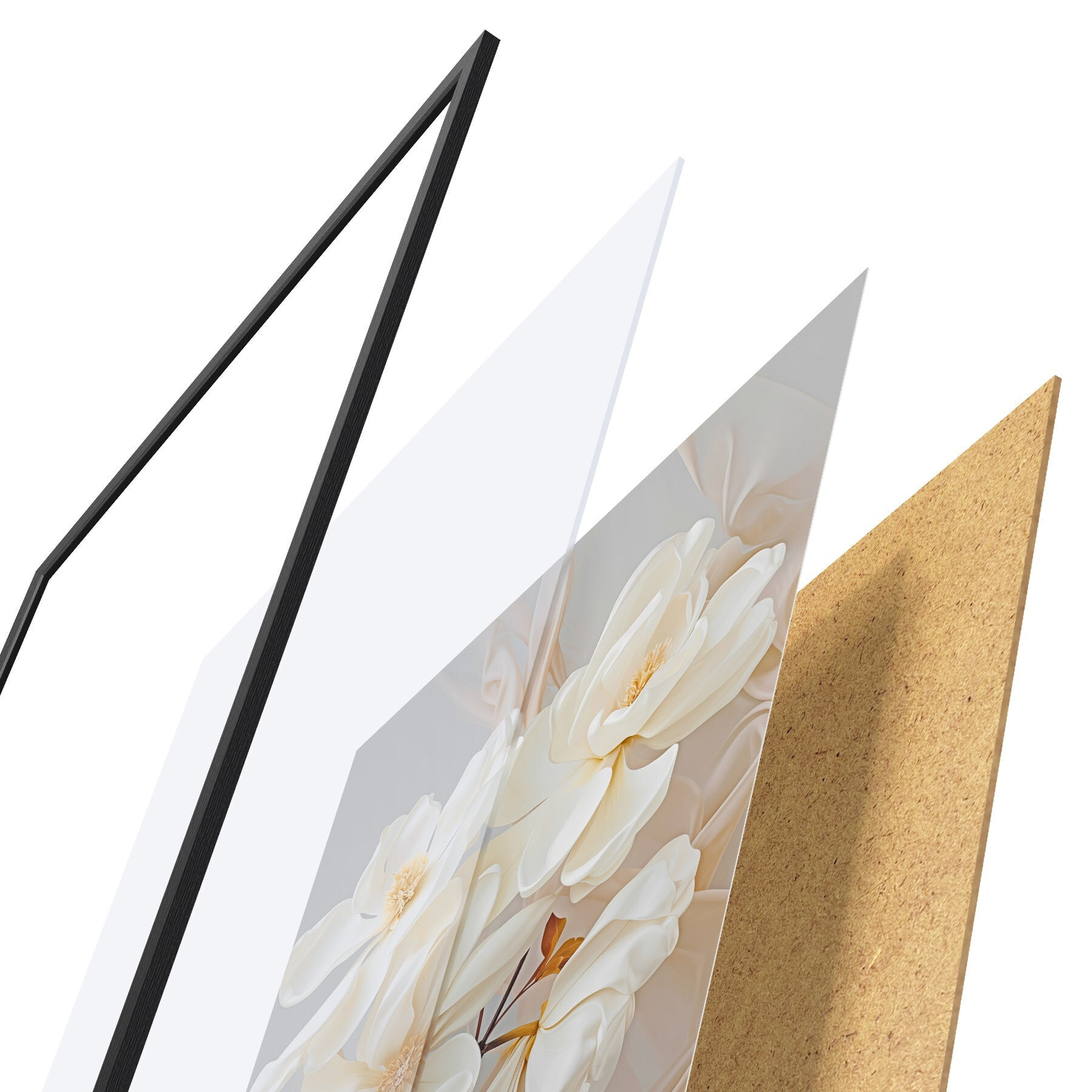 L’affiche encadrée est composée d’un cadre, d’un plexiglas, d’une image imprimée et d’un support en aggloméré. Elle est prête à être accrochée au mur grâce aux fixations situées à l’arrière.