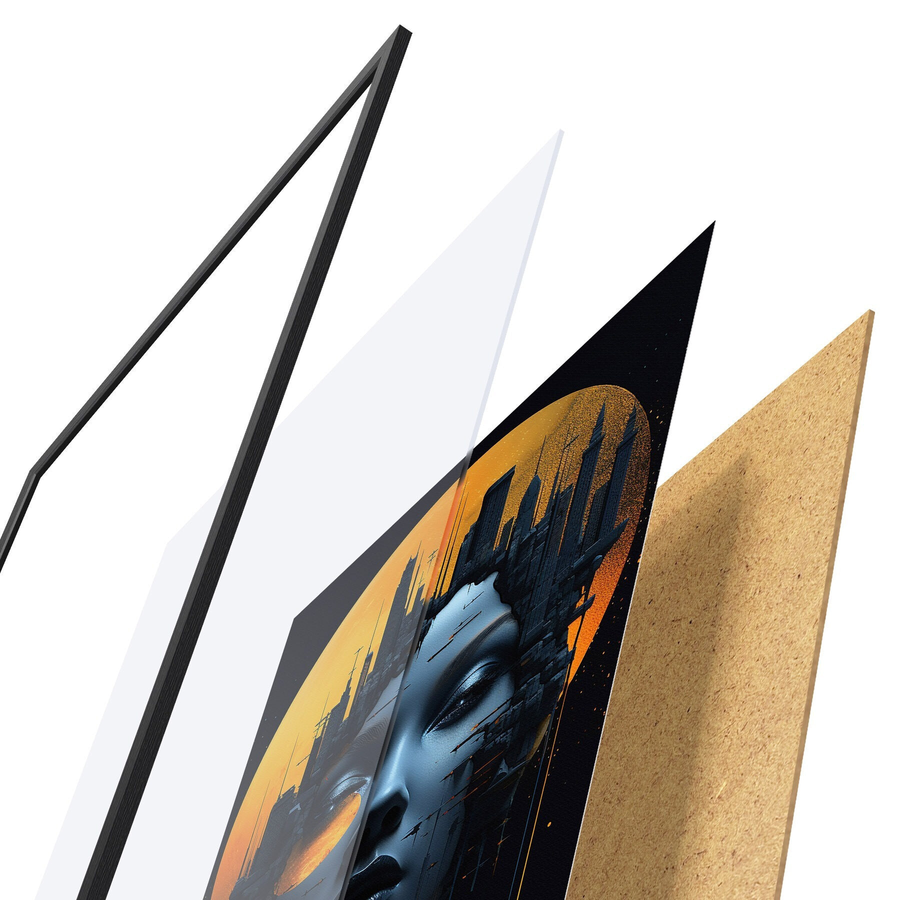 L’affiche encadrée est composée d’un cadre, d’un plexiglas, d’une image imprimée et d’un support en aggloméré. Elle est prête à être accrochée au mur grâce aux fixations situées à l’arrière.