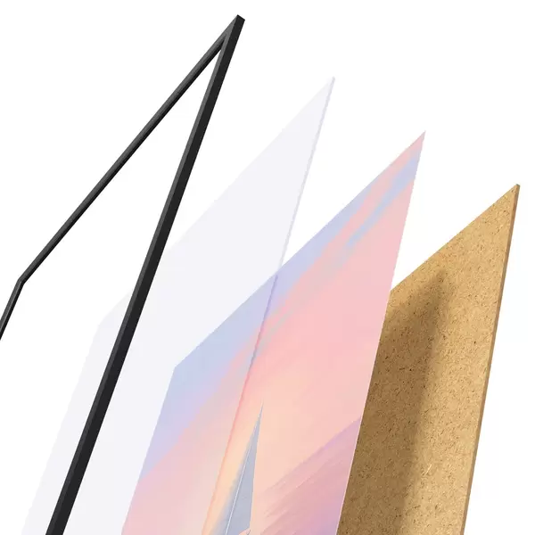 L’affiche encadrée est composée d’un cadre, d’un plexiglas, d’une image imprimée et d’un support en aggloméré. Elle est prête à être accrochée au mur grâce aux fixations situées à l’arrière.