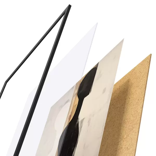L’affiche encadrée est composée d’un cadre, d’un plexiglas, d’une image imprimée et d’un support en aggloméré. Elle est prête à être accrochée au mur grâce aux fixations situées à l’arrière.
