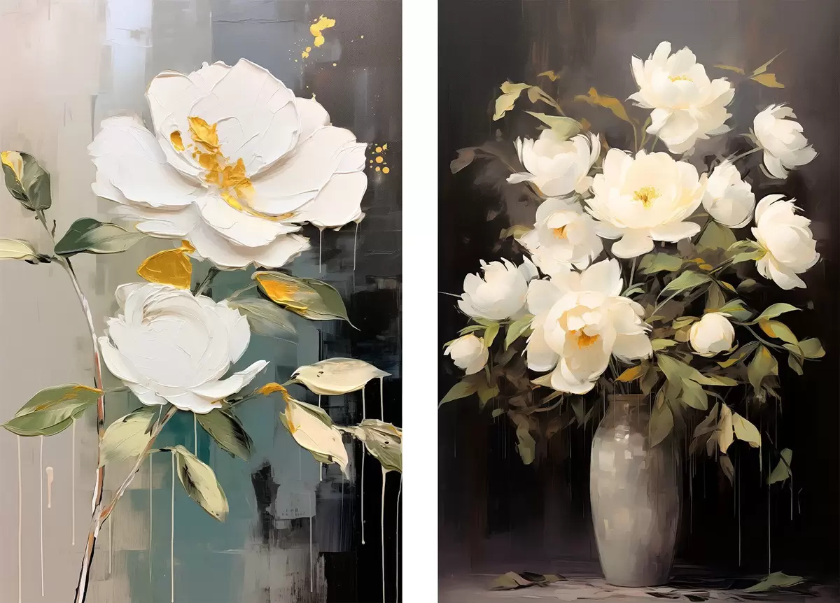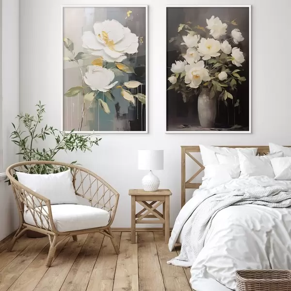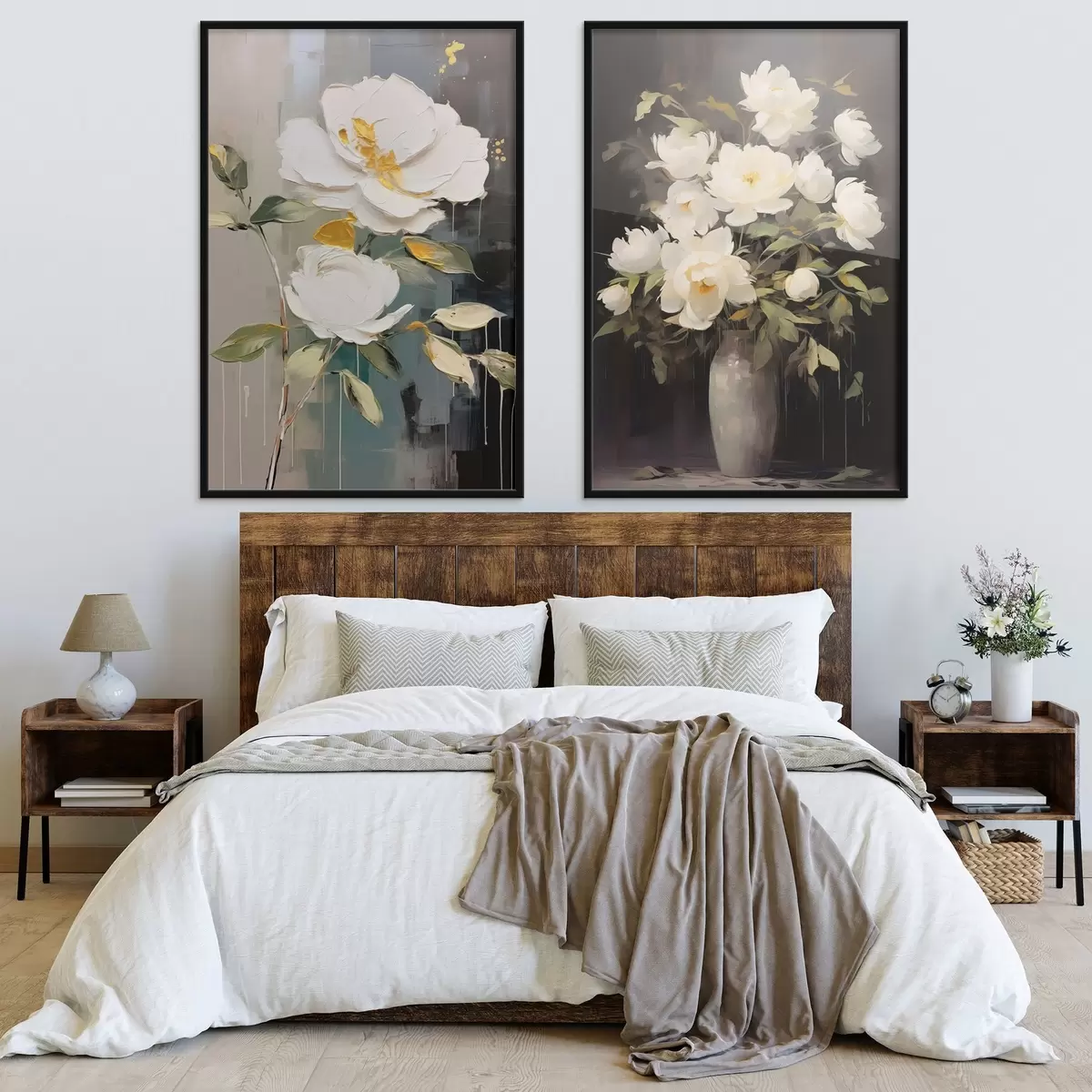 Poster Pivoines blanches sur fond sombre : composition décorative Nr d00634