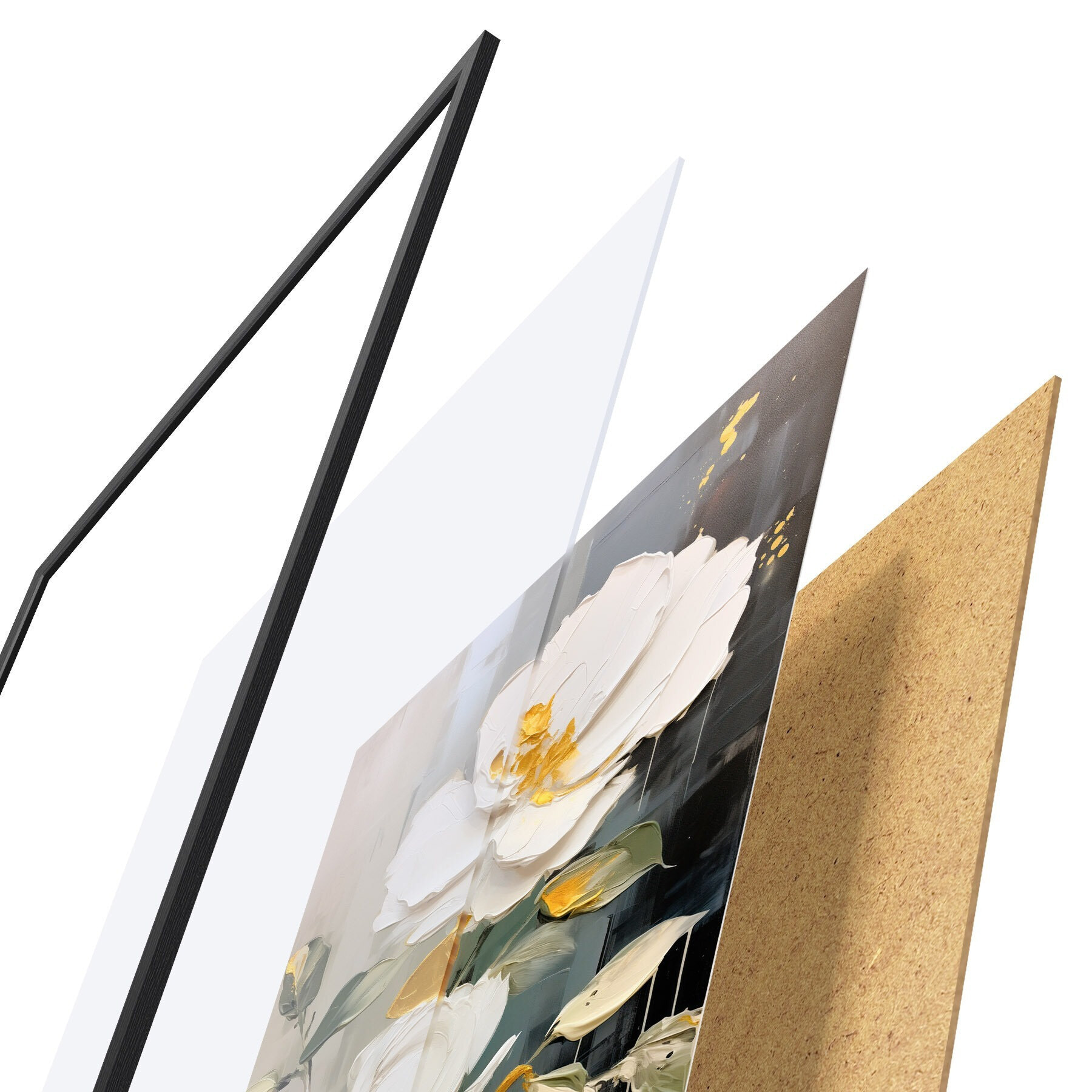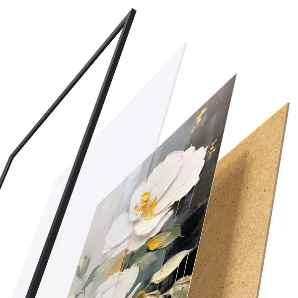 L’affiche encadrée est composée d’un cadre, d’un plexiglas, d’une image imprimée et d’un support en aggloméré. Elle est prête à être accrochée au mur grâce aux fixations situées à l’arrière.