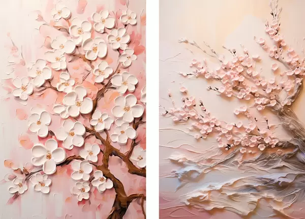 Poster Sakura en fleurs : composition en style impasto d00638