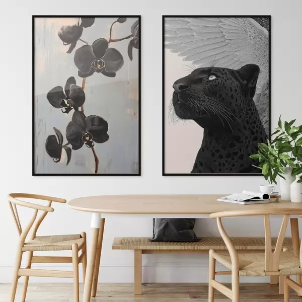 Poster Orchidées sombres et bête ailée : composition artistique Nr d00640