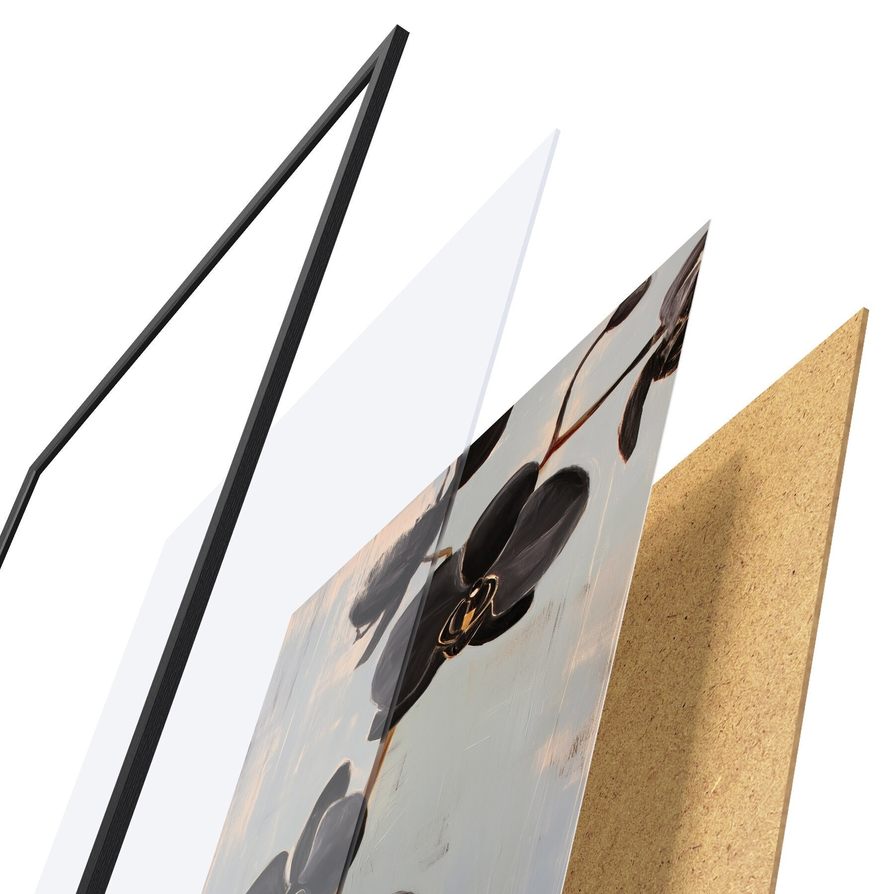 L’affiche encadrée est composée d’un cadre, d’un plexiglas, d’une image imprimée et d’un support en aggloméré. Elle est prête à être accrochée au mur grâce aux fixations situées à l’arrière.