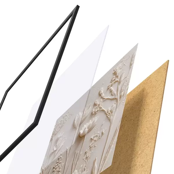 L’affiche encadrée est composée d’un cadre, d’un plexiglas, d’une image imprimée et d’un support en aggloméré. Elle est prête à être accrochée au mur grâce aux fixations situées à l’arrière.