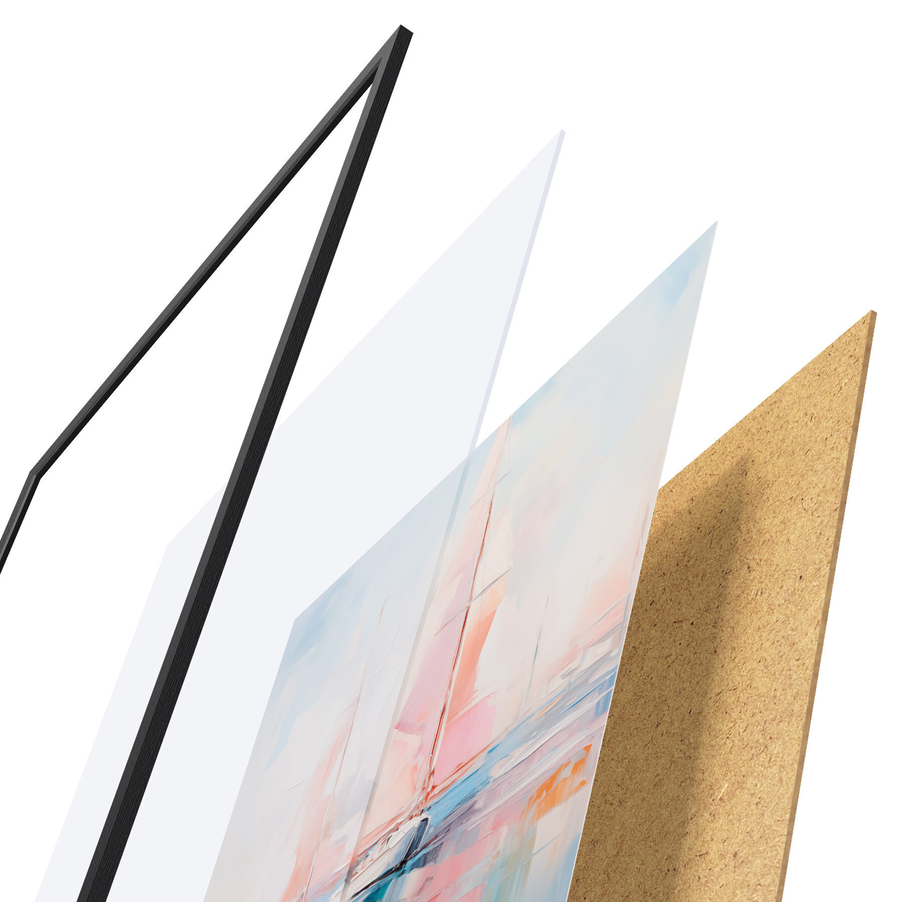 L’affiche encadrée est composée d’un cadre, d’un plexiglas, d’une image imprimée et d’un support en aggloméré. Elle est prête à être accrochée au mur grâce aux fixations situées à l’arrière.
