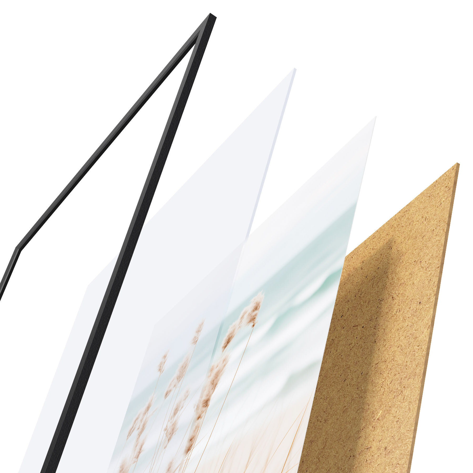 L’affiche encadrée est composée d’un cadre, d’un plexiglas, d’une image imprimée et d’un support en aggloméré. Elle est prête à être accrochée au mur grâce aux fixations situées à l’arrière.