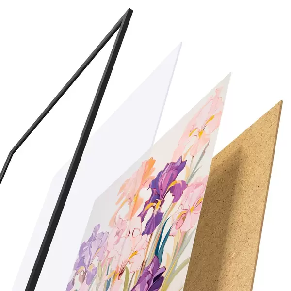 L’affiche encadrée est composée d’un cadre, d’un plexiglas, d’une image imprimée et d’un support en aggloméré. Elle est prête à être accrochée au mur grâce aux fixations situées à l’arrière.