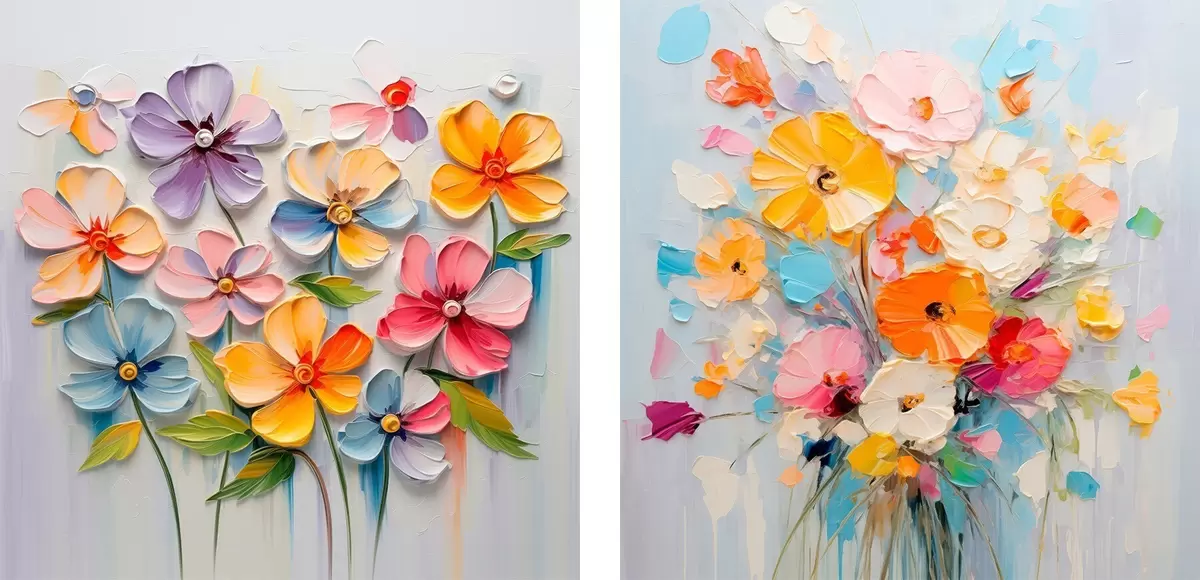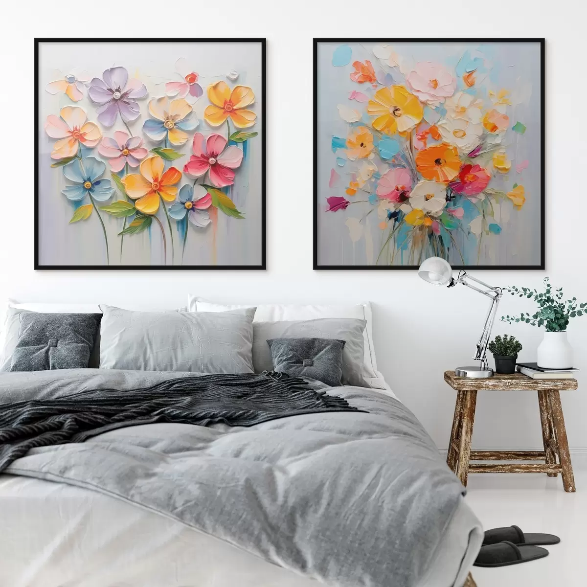 Poster Compositions abstraites de fleurs lumineuses réalisées en technique d'empâtement d00662