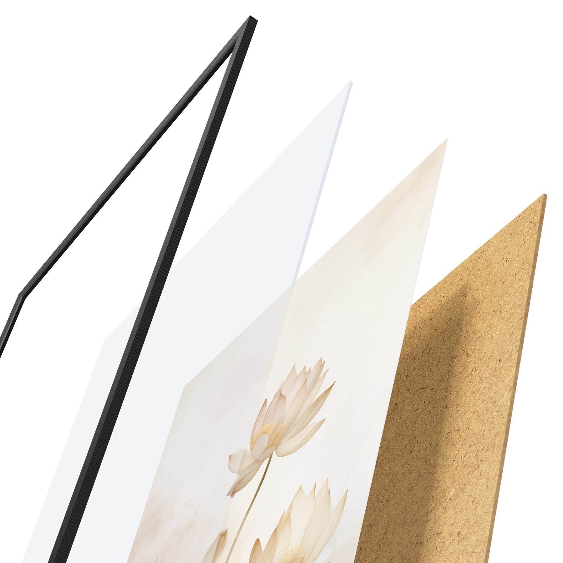 L’affiche encadrée est composée d’un cadre, d’un plexiglas, d’une image imprimée et d’un support en aggloméré. Elle est prête à être accrochée au mur grâce aux fixations situées à l’arrière.