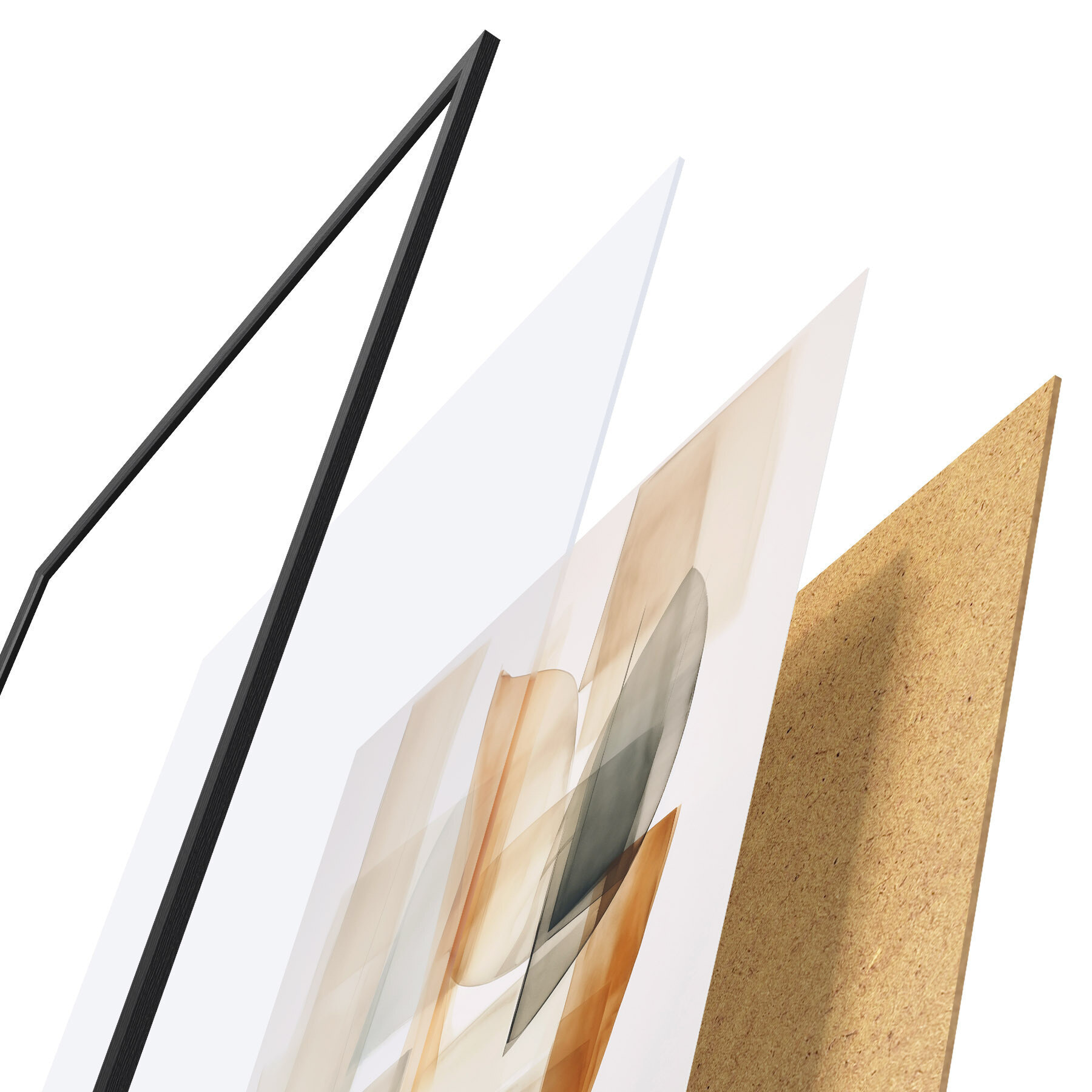 L’affiche encadrée est composée d’un cadre, d’un plexiglas, d’une image imprimée et d’un support en aggloméré. Elle est prête à être accrochée au mur grâce aux fixations situées à l’arrière.