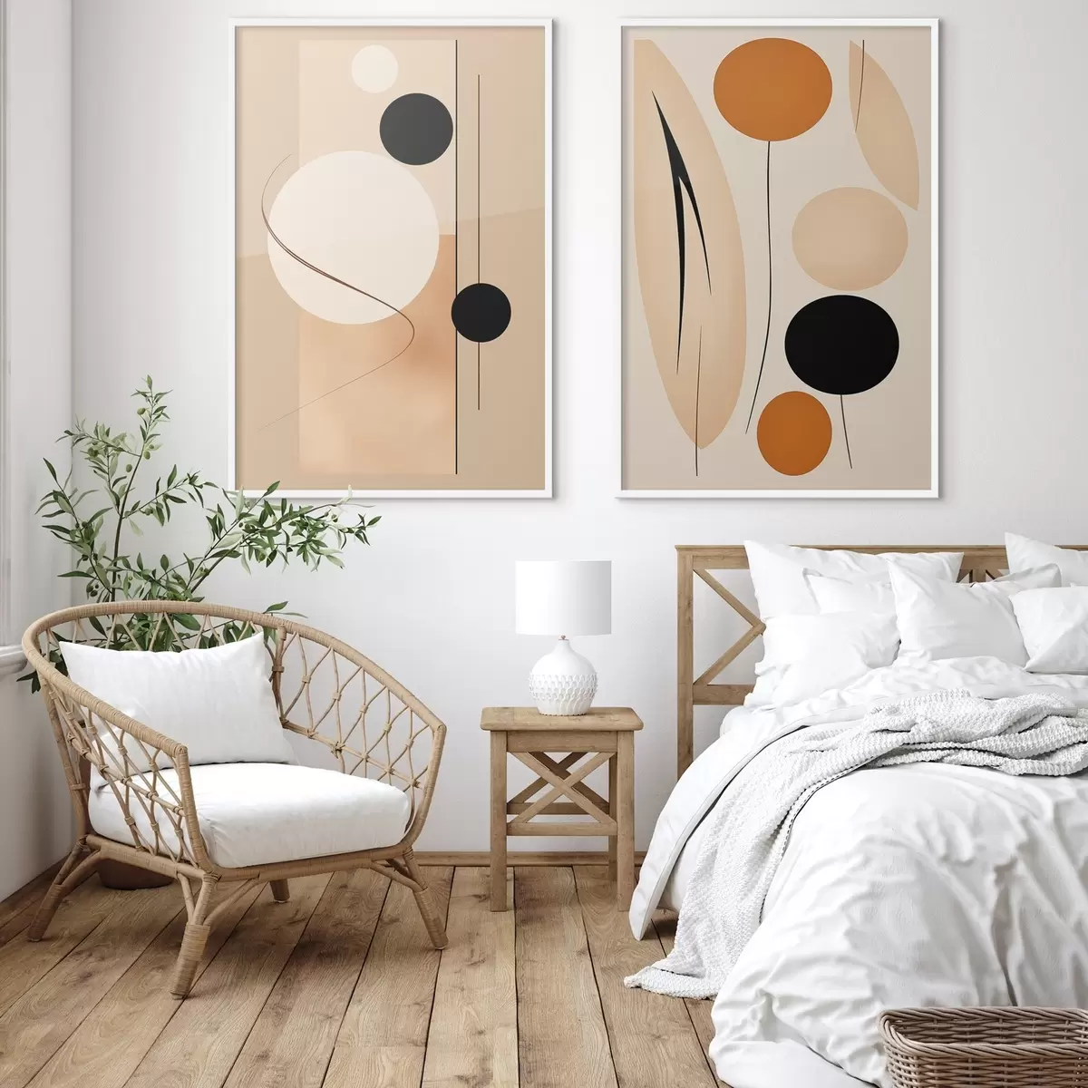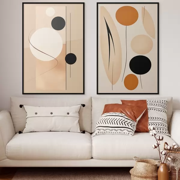 Poster Cercles géométriques minimalistes dans les tons beige et noir Nr d00685