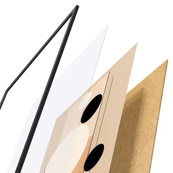 L’affiche encadrée est composée d’un cadre, d’un plexiglas, d’une image imprimée et d’un support en aggloméré. Elle est prête à être accrochée au mur grâce aux fixations situées à l’arrière.
