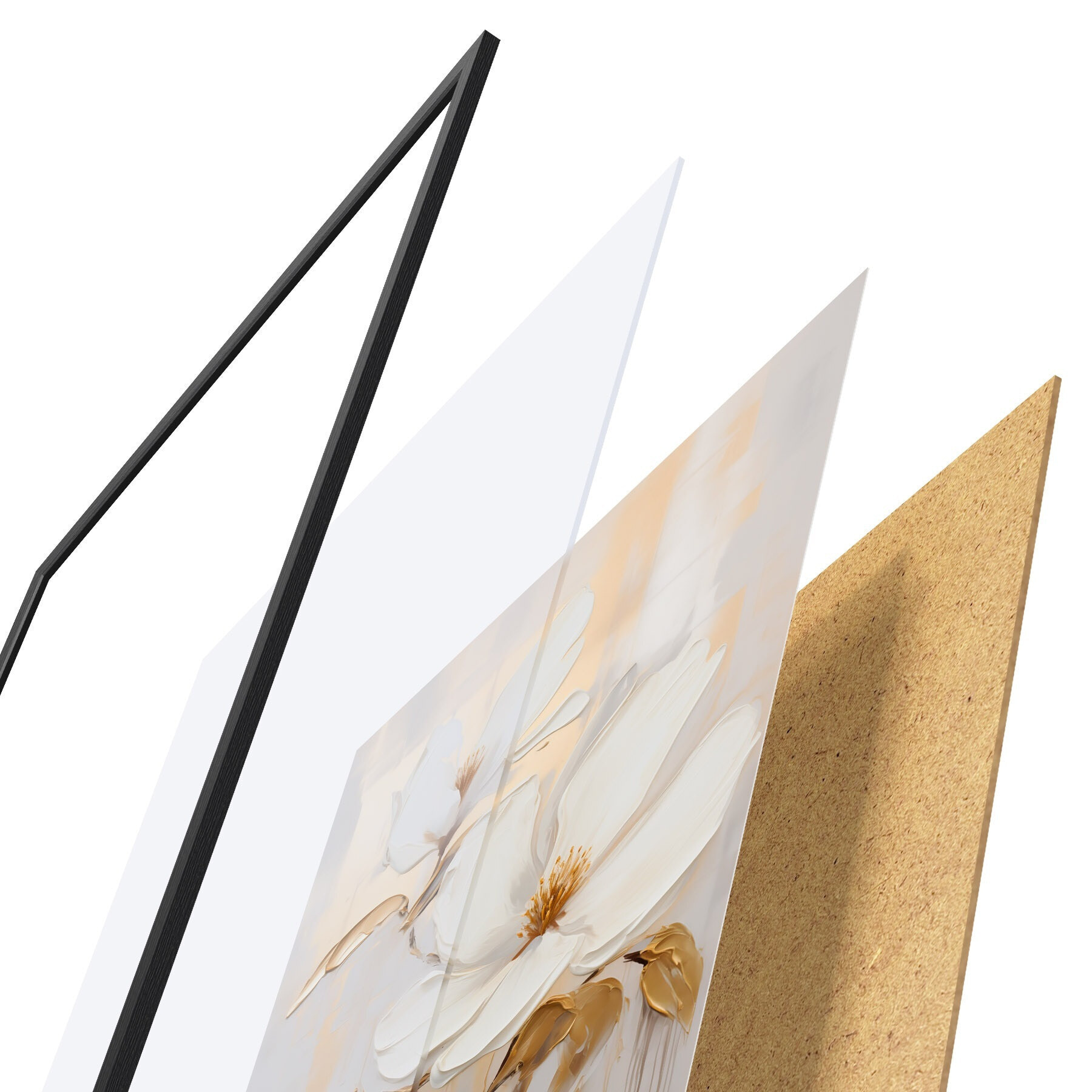L’affiche encadrée est composée d’un cadre, d’un plexiglas, d’une image imprimée et d’un support en aggloméré. Elle est prête à être accrochée au mur grâce aux fixations situées à l’arrière.