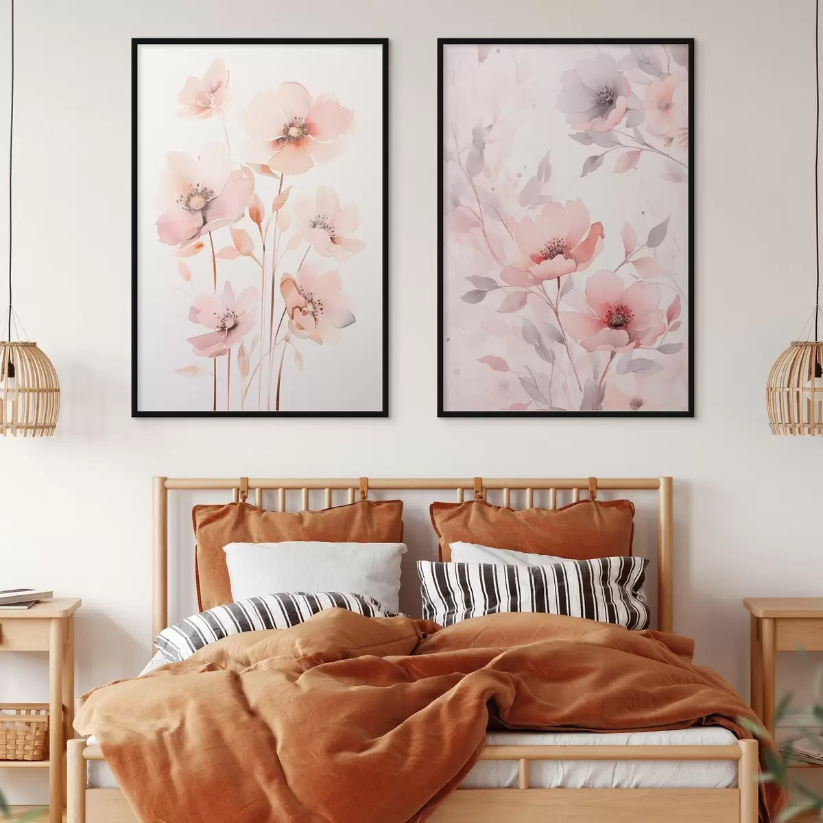 Poster Fleurs roses aquarelles sur tiges fines d00690