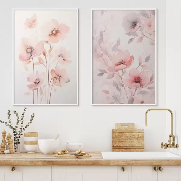 Poster Fleurs roses aquarelles sur tiges fines Nr d00690