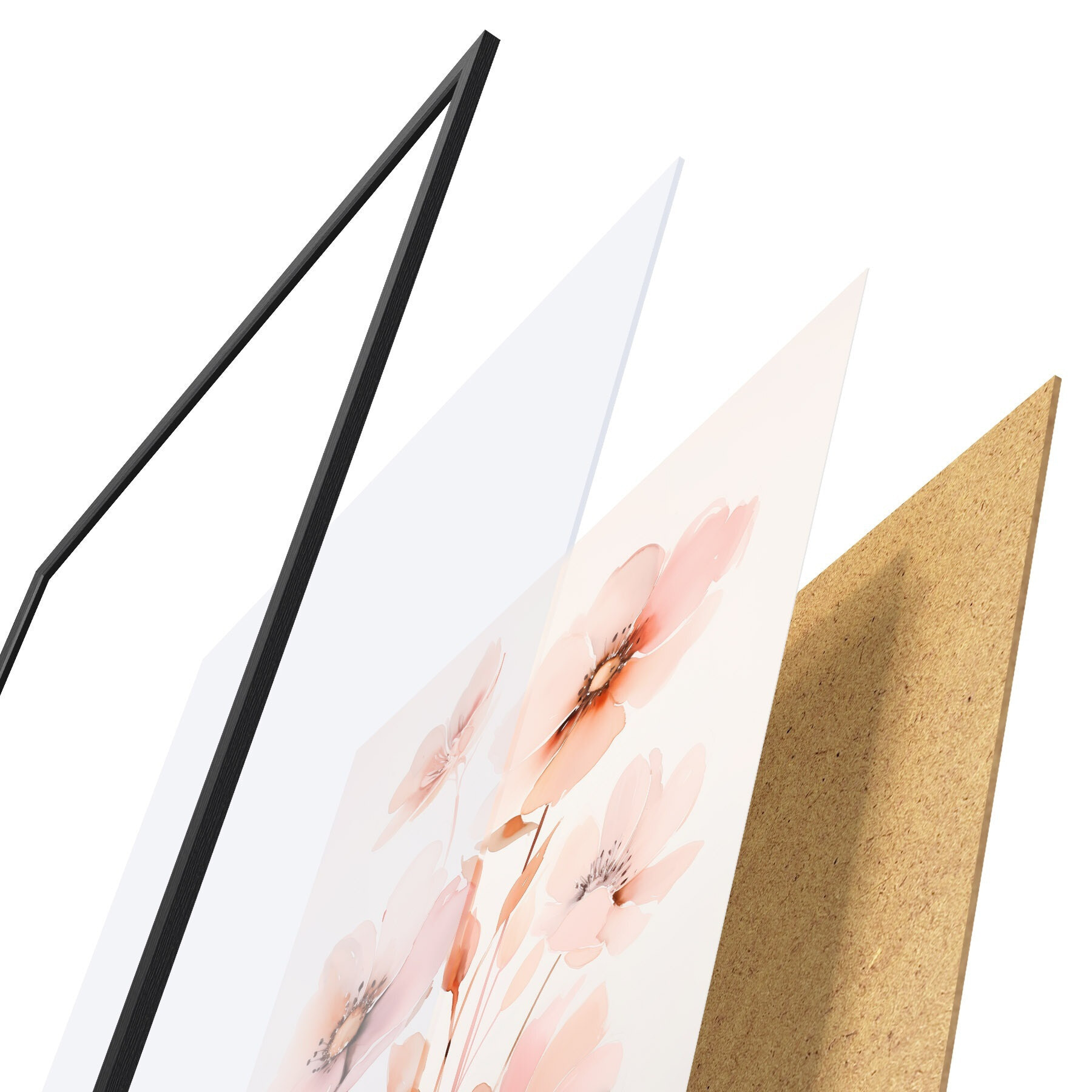L’affiche encadrée est composée d’un cadre, d’un plexiglas, d’une image imprimée et d’un support en aggloméré. Elle est prête à être accrochée au mur grâce aux fixations situées à l’arrière.
