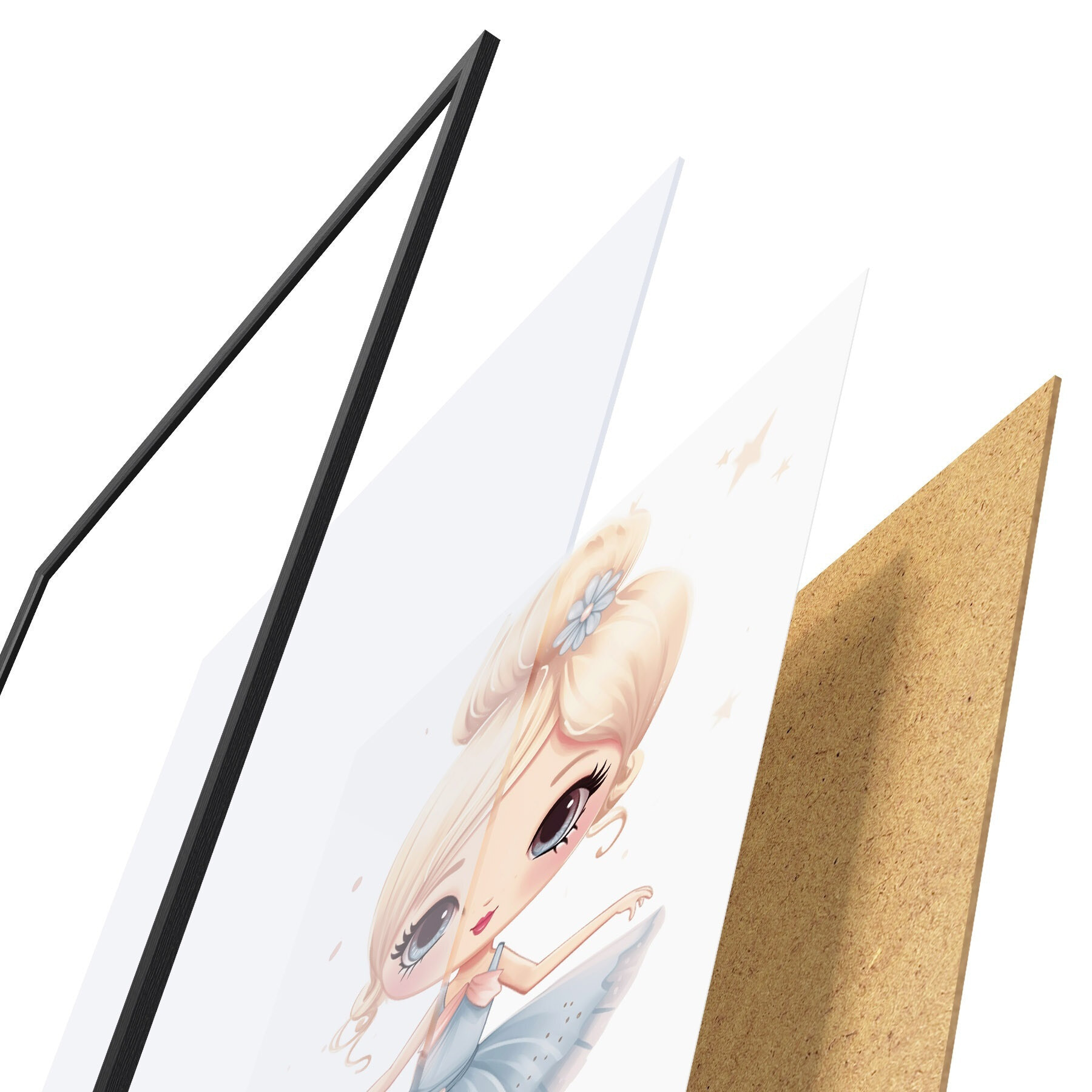 Poster Poupée ballerine en robe bleue et licorne à la crinière rose Nr d00692