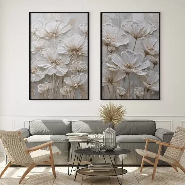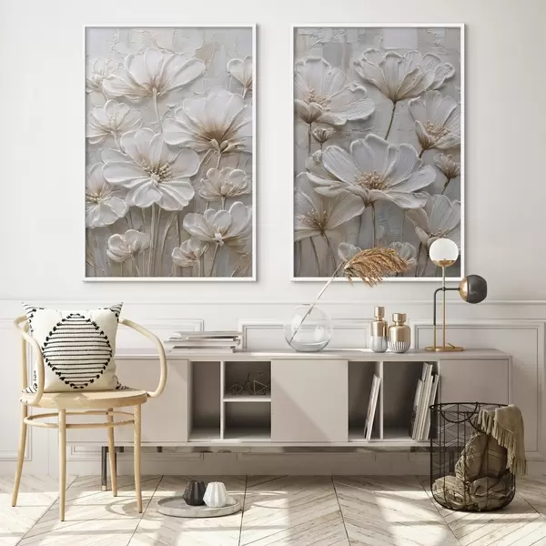 Poster fleurs en crème avec imitation de style impasto d00701