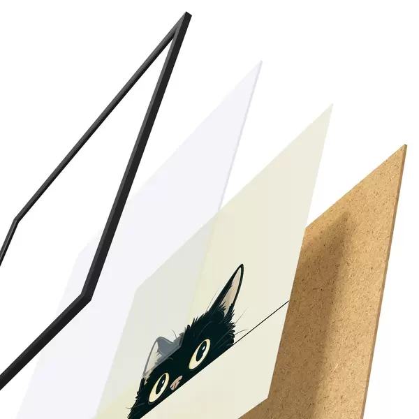 L’affiche encadrée est composée d’un cadre, d’un plexiglas, d’une image imprimée et d’un support en aggloméré. Elle est prête à être accrochée au mur grâce aux fixations situées à l’arrière.