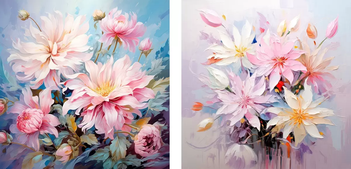Trois types de matériaux peuvent être commandés : Economic Canvas - matériau dense et durable pour l'impression numérique, identique à la toile de peintre, surface imperméable, reproduction réaliste des détails, matériau à grain moyen. Premium Canvas - la texture ressemble à celle d'une toile de peintre (petits fils entrelacés). Reproduction douce et détaillée de l'image sur une surface mate. Eco-Premium - tissu 100 % coton de haute qualité. Grâce aux fibres naturelles de coton, le matériau est durable et résistant à l'usure. Excellente reproduction des couleurs et des détails.
