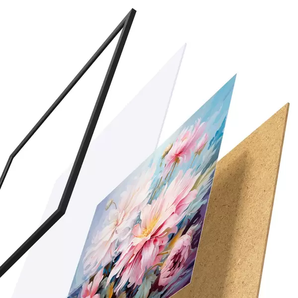 L’affiche encadrée est composée d’un cadre, d’un plexiglas, d’une image imprimée et d’un support en aggloméré. Elle est prête à être accrochée au mur grâce aux fixations situées à l’arrière.