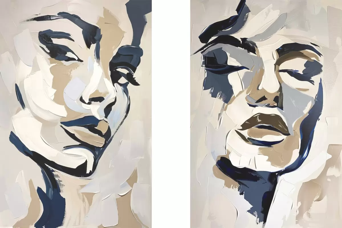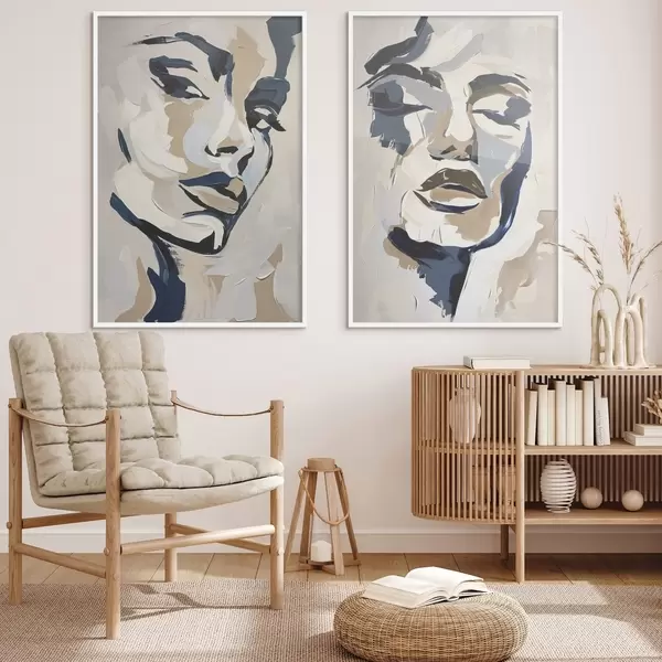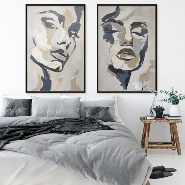 Poster Visages abstraits de femmes avec des coups de pinceau imités Nr d00713